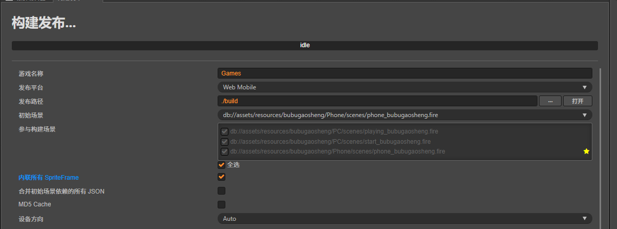 新建一个项目打包场景可以选择,但是正在做的项目打包不知道为什么不能单选场景