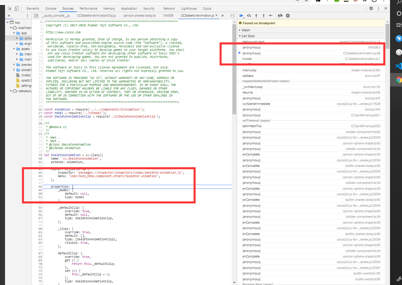 Cocos Creator2.4.3调试调用堆栈,引擎部分错乱