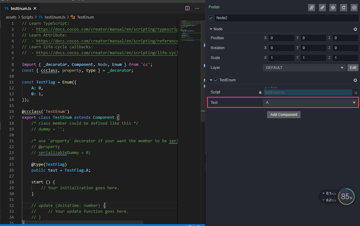 我的是creator 3D1.2 你把Enum A的值改为-1 从负数开始 一样报错, 错问题。