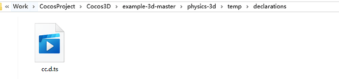 这里提示代码提示文件 cc 存储位置应该在这个地方,如果没有的话,可以试着去你当前的引擎目录下执行 npm run build 看看能不能生成,不能的话,就吧引擎目录下 bin 文件下的 cc 弄过来