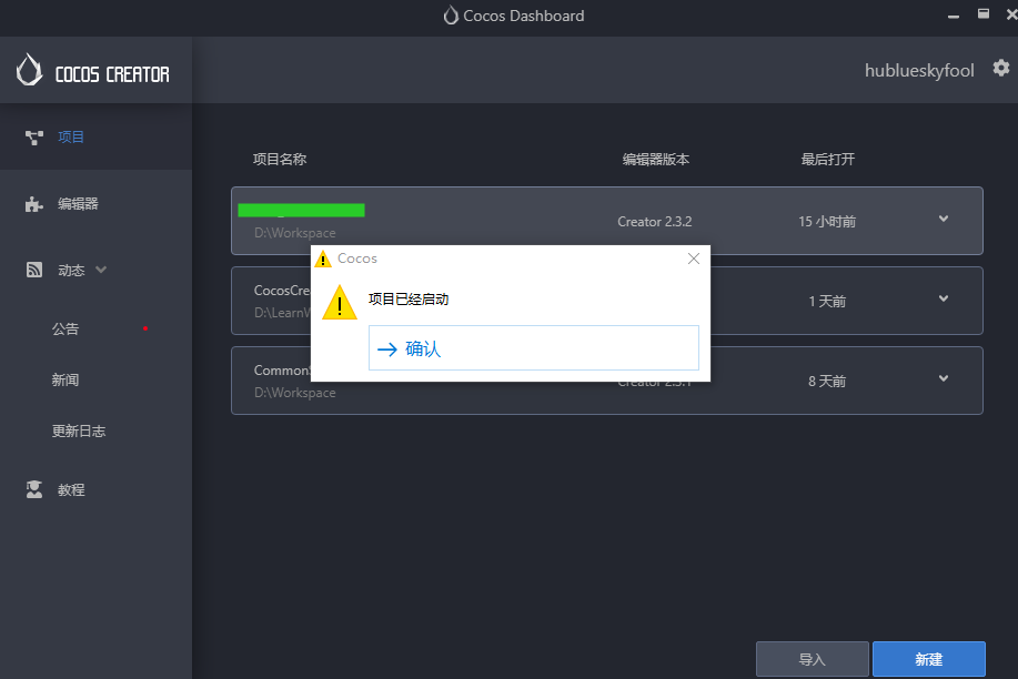 使用情况是这样的,我第一次下载后安装使用,安装打开过CocosCreator。在当天下班后关闭CocosCreator,但并没有关Dashboard,第二天上班后就发现打不开了。