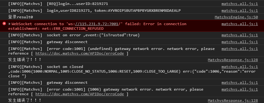 不是,我这个只是在浏览器调试,Matchvs那边工单没处理,qq群加不上,客服qq没回复,邮件也没回复