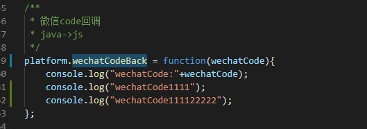 你需要确认在JS端,使用window.platform.wechatCodeBack(‘ssss’) 不会报错。。。