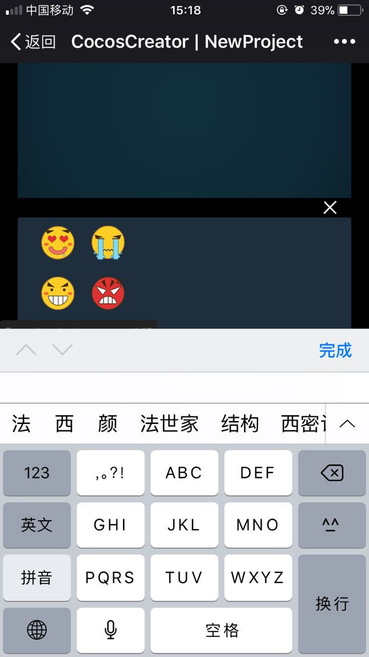 然后输入几个字点击屏幕外关闭软键盘,再次点击editbox就会出现挡住editbox ,ios无法自动播放声音要点击才有声音第一个问题:可能是微信的版本或者手机机型导致的,之前你发过的帖子我并没有重现该问题