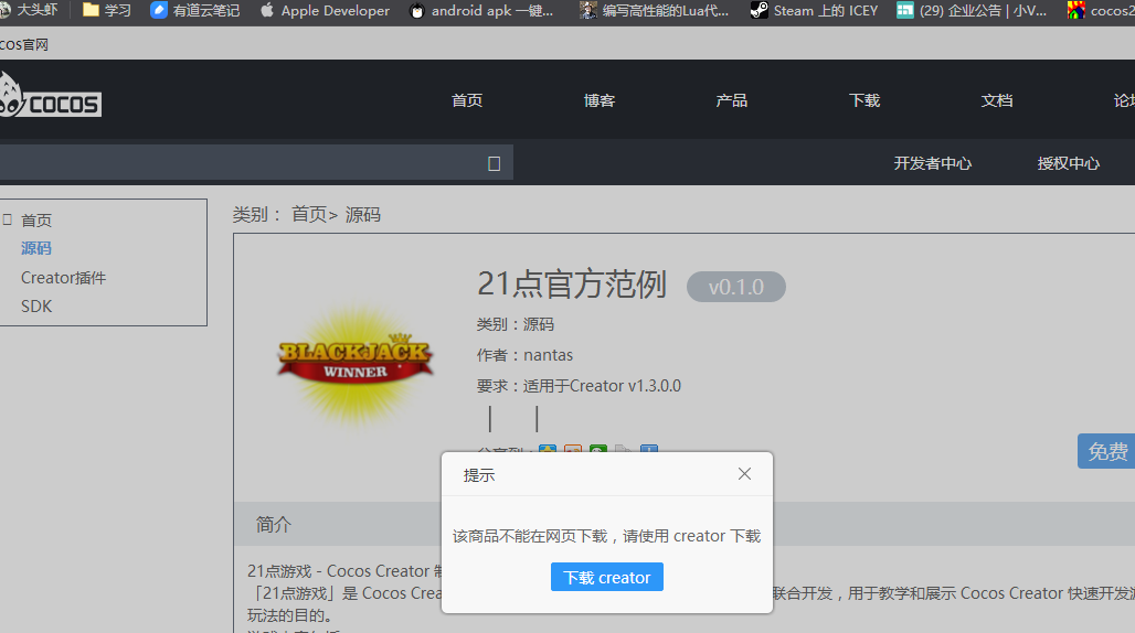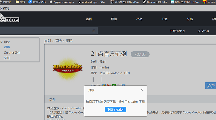 在creator里也找不到可以下载 的地方? 如果有请告知