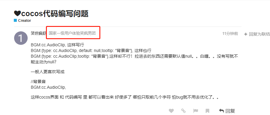 BGM:{type: cc.AudioClip,tooltip: “背景音”},这样却不行!拉进去的东西还需要默认值null。。白瞎。。没有写就不能主动为null?