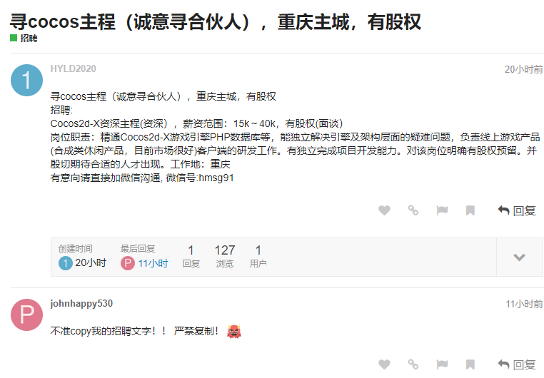 寻cocos主程(诚意寻合伙人),重庆主城,有股权