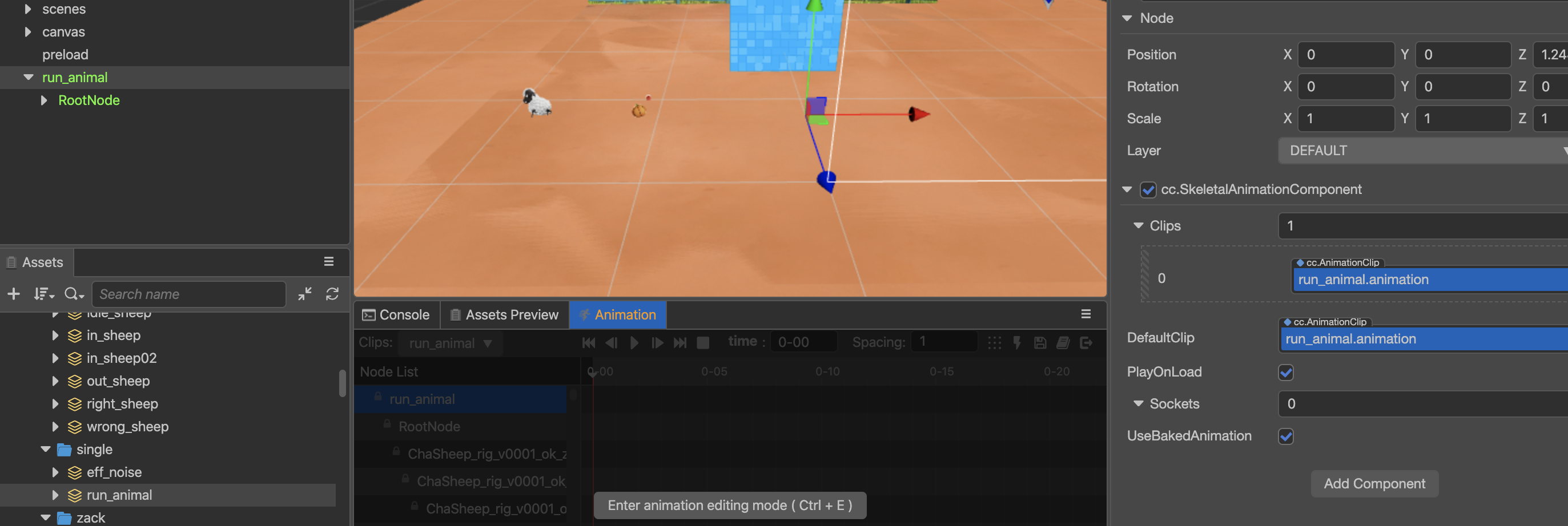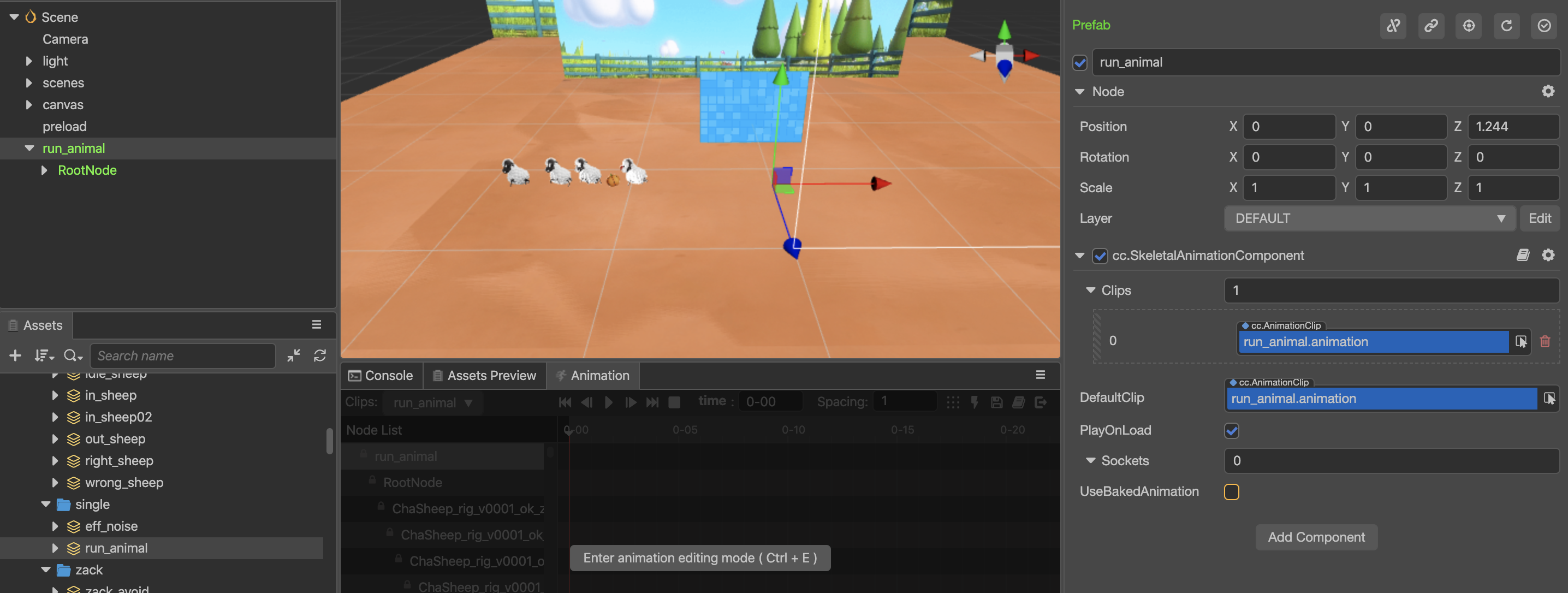 比如说我动画里有2只羊跑过去,动画的过程就是先做了一个跑过去动画,整体复制出来摆在不同的初始位置上,最后出成一个动画。