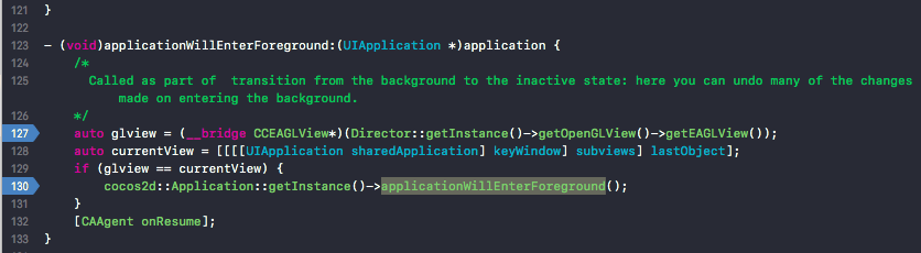 1.7 从后台显示到前台,glview与currentView不相等,applicationWillEnterForeground未执行.