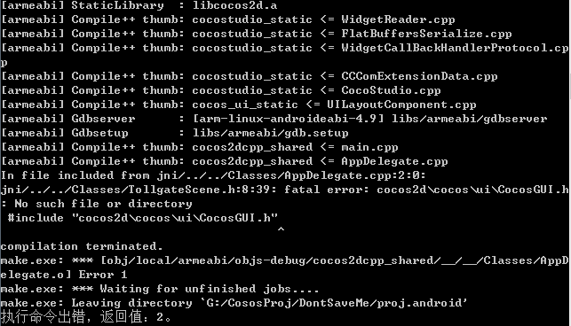 错误信息不是写得t很清楚吗? CocosGUI这个文件找不到,看看按这个路径找得到不。