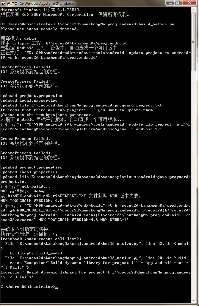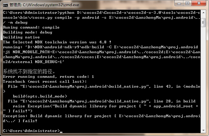Exception: Build dynamic library for project [ E:\cocos2d\LZmajiang\proj.android