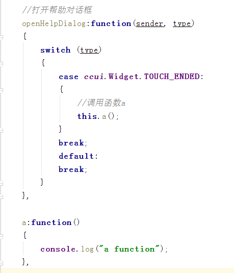 最近做项目时遇到,一个问题,在下图所示的代码中openHelpDialog函数调用a函数在浏览器中运行时提示SceneStart.js:608 Uncaught TypeError: this.a is not a function,可是我在代码中明明定义了这两个函数,其中openHelpDialog函数是按钮响应函数