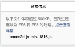 微信小程序编译异常说cocos2d-js-min超过500kb的问题,需要重视吗?是什么引起的,可以解决吗?
