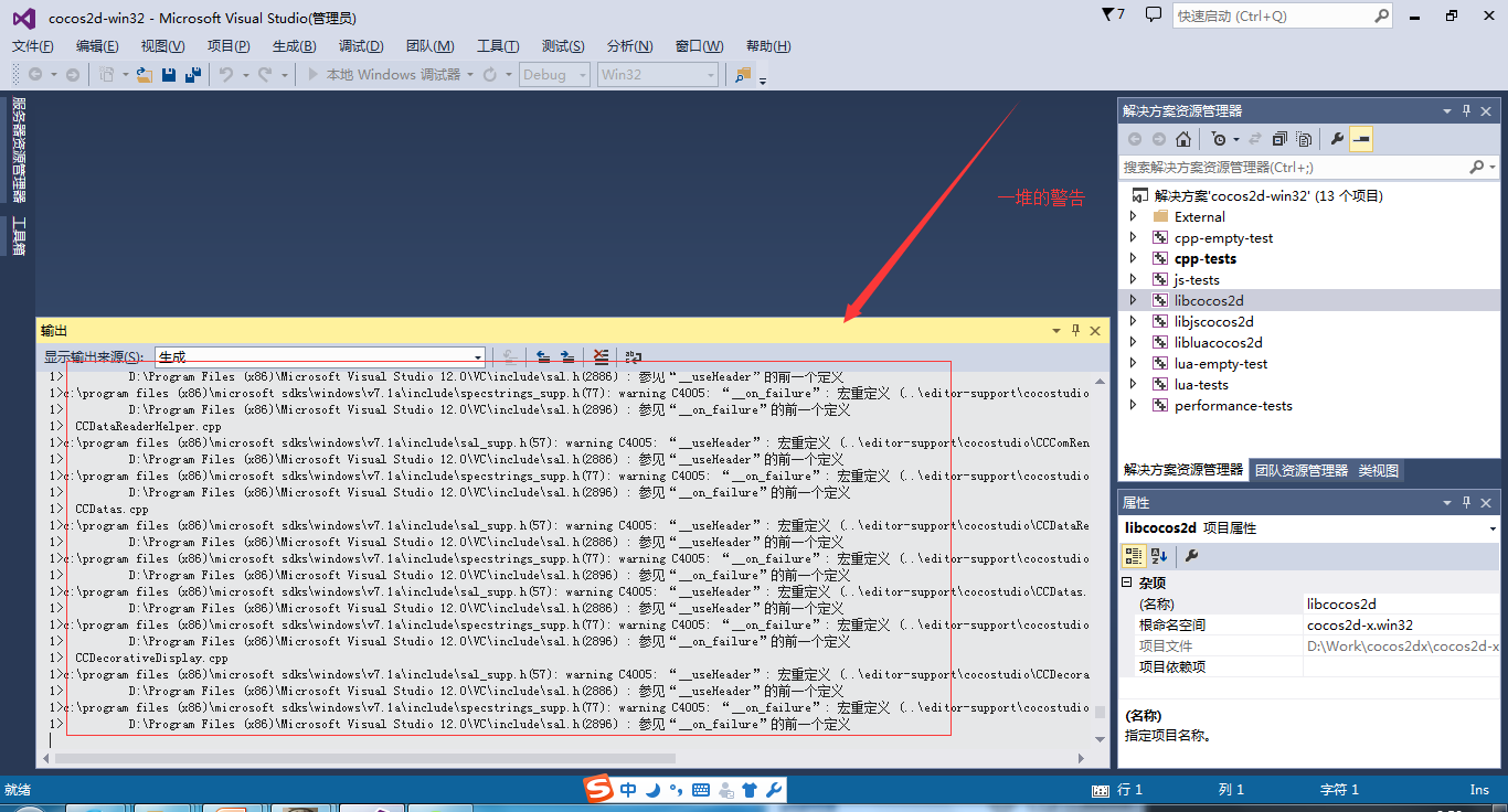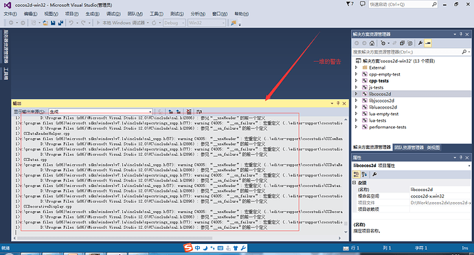 cocos2d-x-3.12 用VS2013编译 一堆的警告,如下: