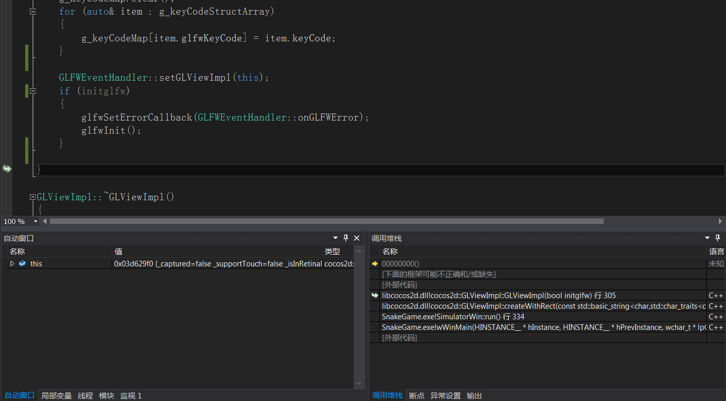 不是很懂为什么会在GLViewImpl构造函数的末尾花括号处报错。