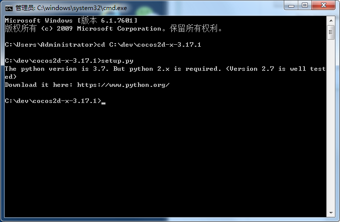 新手求助,下载了cocos2d-x 3.17然后安装了python-3.7.2,,cocos Creator也安装了。