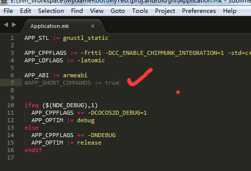 新建工程 proj.android编译失败,删除Application.mk中的APP_SHORT_COMMANDS := true就可以了,请确认!