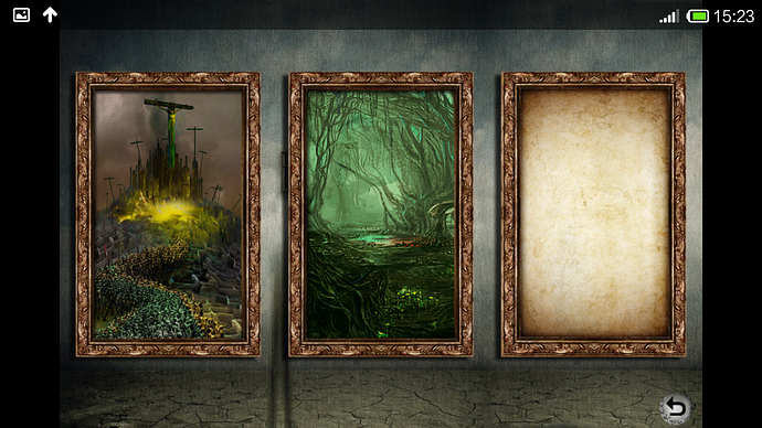 这里我们新建了一对文件命名为SelectScene,其功能是选择世界。因为我们制作的是《神曲》,但丁游历了地狱、炼狱、天堂,这就是三个子世界,当玩家进入游戏后要选择进入哪个世界。最终效果如下图(空白的是还未解锁的):