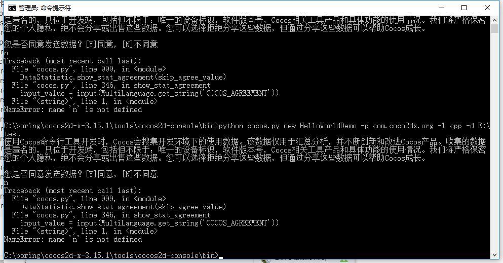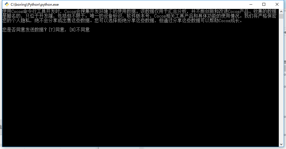 如果是运行根目录下面的bin文件里的cocos.py,那么会出现图二的情况,输入y||n,回车就会闪退。