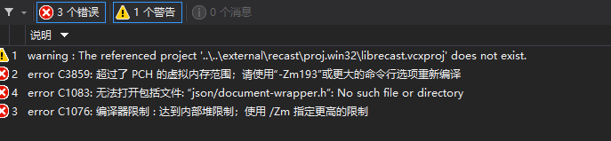 1> error C3859: 超过了 PCH 的虚拟内存范围;请使用“-Zm193”或更大的命令行选项重新编译