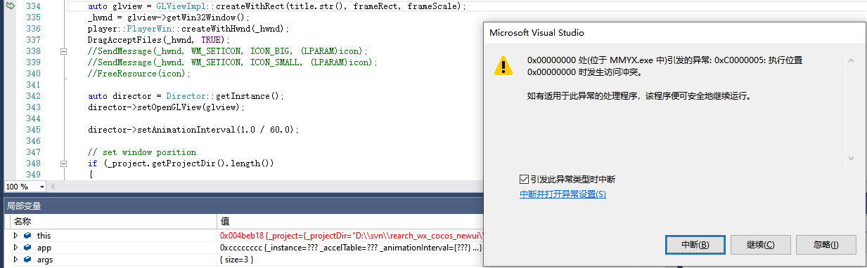 cocos2d-x3.10,vs2015编译到这里挂了,有大佬知道什么情况吗?