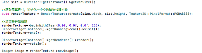 //清空并开始获取 renderTexture->beginWithClear(0.0f, 0.0f, 0.0f, 255); 这句应该效果是一样的吧?