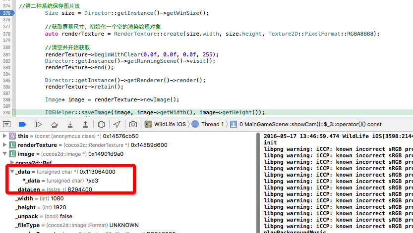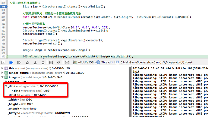 代码如图, 然后断点后,可以看到image的data数据不对, 但是尺寸均正常:
