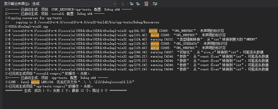 cocos2dx 4.0版本的库生成失败,求解决