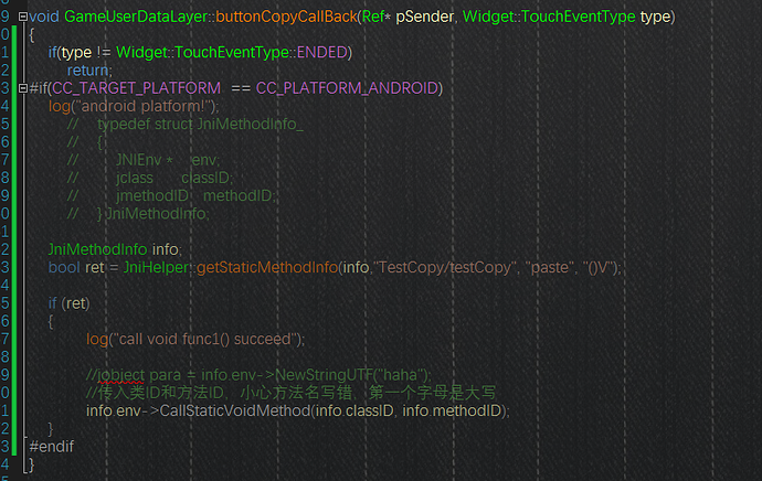cocos2dx调用android 剪切板崩溃 求解 代码如下