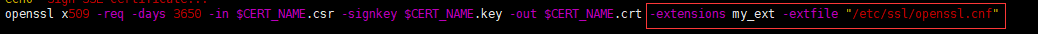 最后将生成证书的命令相应修改为使用自定义的扩展: