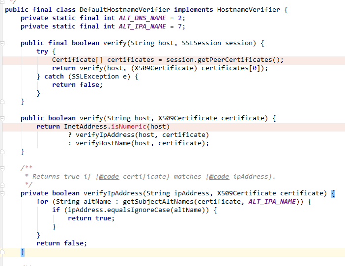 cn字段为ip时是通不过验证的,这点大家可以看下android sdk源码DefaultHostnameVerifier验证: