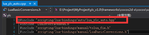 #include “scripting/lua-bindings/auto/lua_ylc_auto.hpp” 这个链接应该是 #include “lua_ylc_auto.hpp”