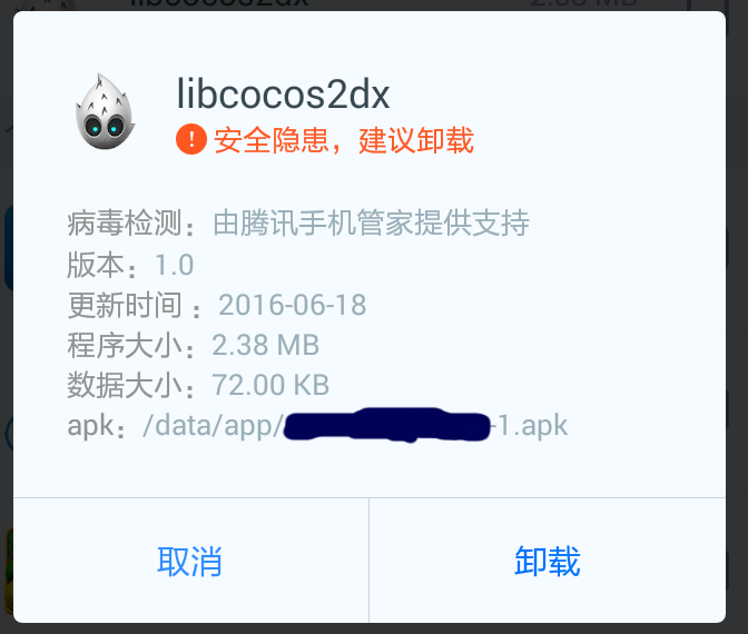 - 腾讯不可能判断原始的ibcocos2dx.so逻辑里面有病毒,或者说有通过系统敏感API去访问用户敏感数据的逻辑的行为。因为腾讯自己有大量游戏就是用cocos2dx开发的