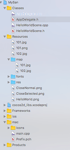 我这三张图片都放在项目下的resource文件夹里面,还在里面新建了一个map文件夹,放了两张图片进去,但是也没读到。。从xcode上来看,应该已经添加到工程才对。。同个目录下的项目自带图片可以读取到,但是我添加的图片读取不到。。