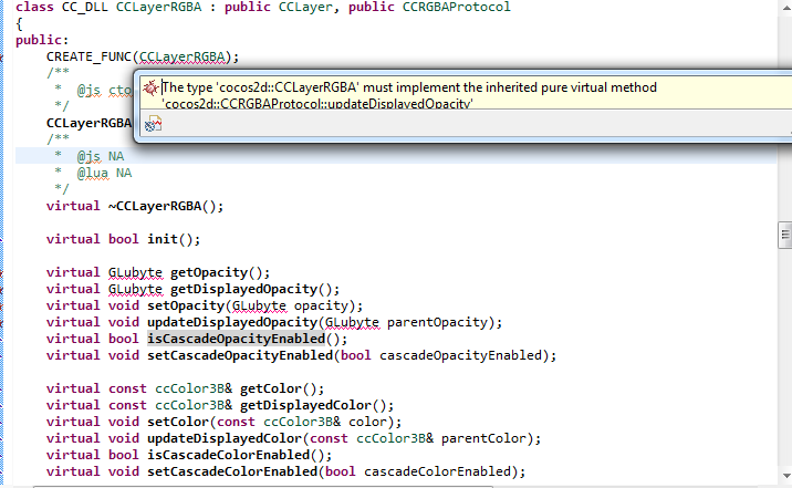 上面那个create宏不知道是什么错误,其他类用的时候都没有,关键是下面的别名GLubyte(还有其他的,不过都在时一个头文件定义的)显示couldn’t be resolved。不知道是不是没有能够include到那个头文件,但我在visual studio上是可以运行的。