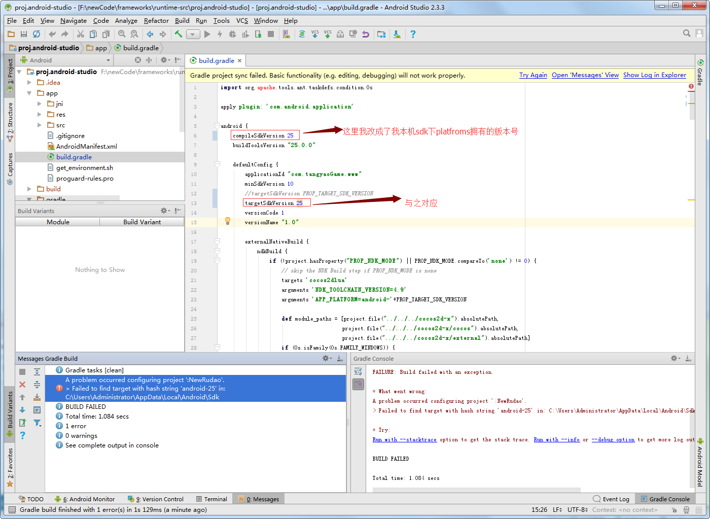 我检查了sdk下的platforms发现只有25.就改成了25。还是不行