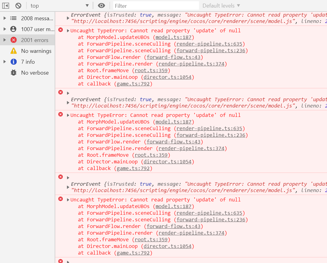 声明的是 null,会有地方去初始化的,你这里错误有可能是这个 model 被销毁了,但是没有在渲染层面移除,所以你这里得调试一下是哪个 model 被销毁了,以及哪个地方让他去销毁了