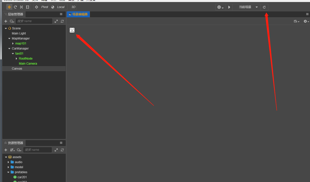 试试Ctrl+R,上面那个刷新按钮是给预览用的,不是给场景编辑器用的。
