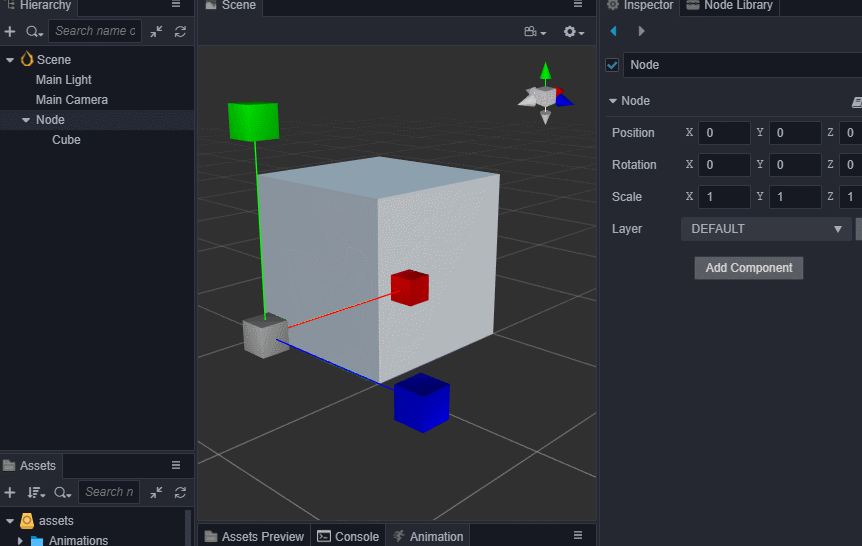 例如你想要以Cube的一个角为缩放点,就在Cube上面加一个空节点,然后把Cube移动到(0.5,0.5,0.5, 这样你点击外层的节点就会看起来是锚点在一个角上了,这时以外层的节点缩放就是以这个角为锚点了。