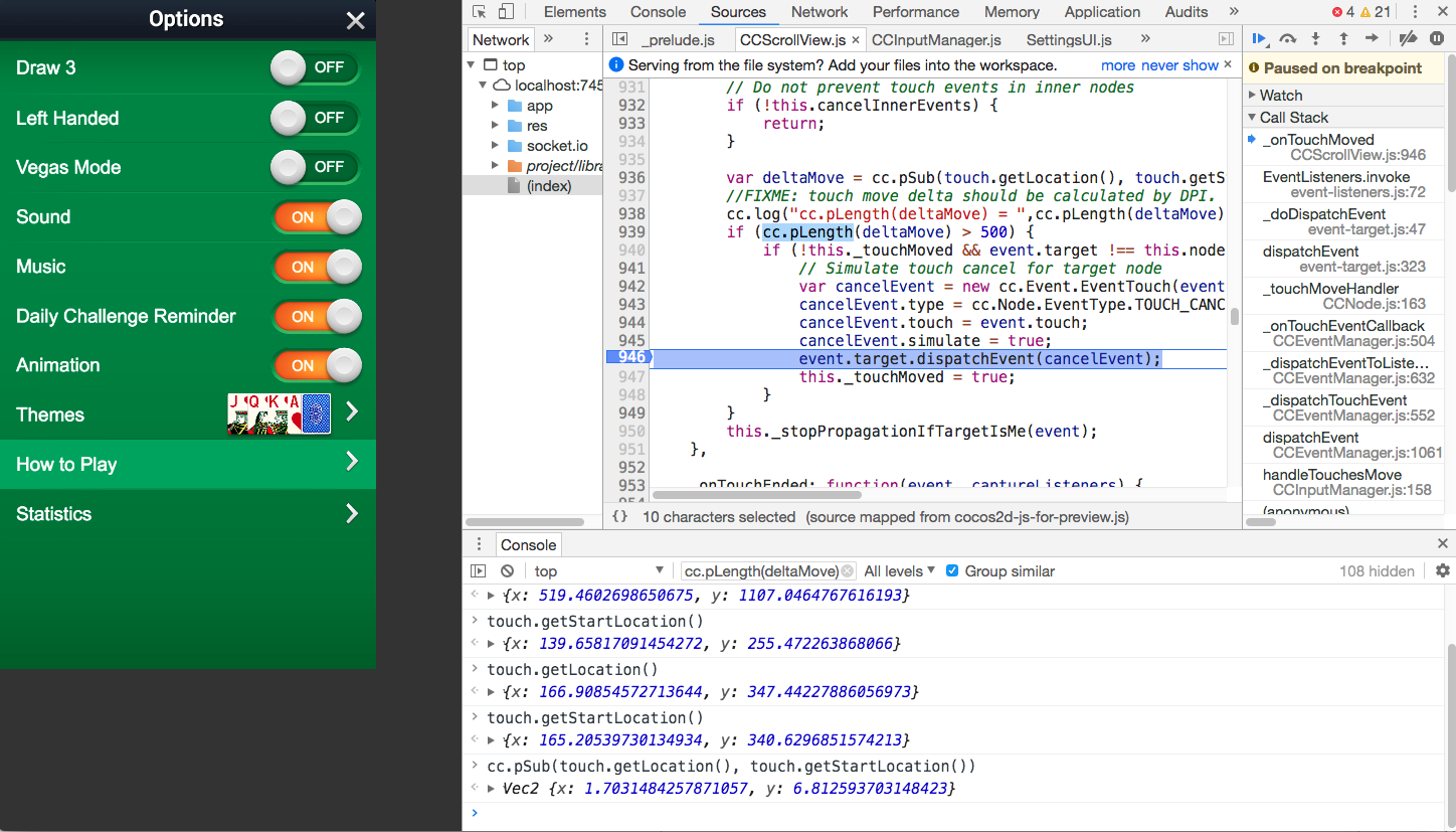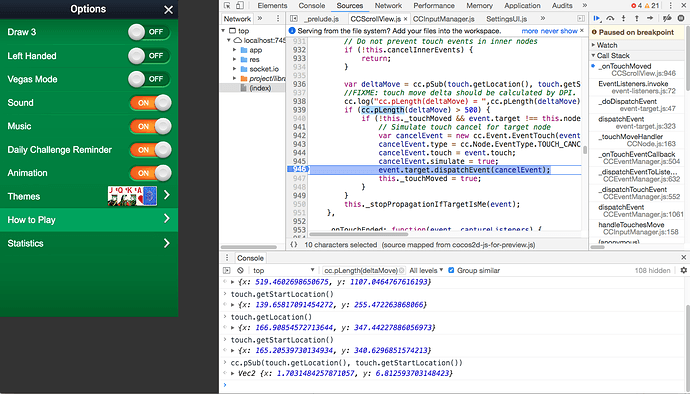 我跟踪到CCScrollView.js这个文件里的_onTouchMoved()函数的时候,发现这里会判断touch事件是继续发展为cancel还是moved事件,最关键的一点是不知道为什么这个时候能够进入这个if判断,因为此时我的cc.plength(deltaMove)并没有 > 500 ,但是还是进入了这个判断。。。