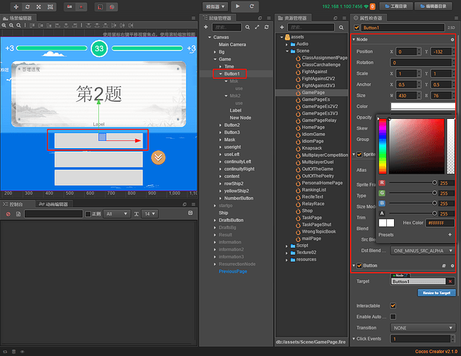 cocosCreator从1.9更新到2.1后 系统生成的白色按钮偏灰 请看下图