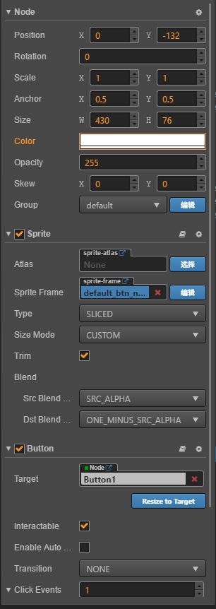 按钮是在场景中用 Button组件创建的 下图