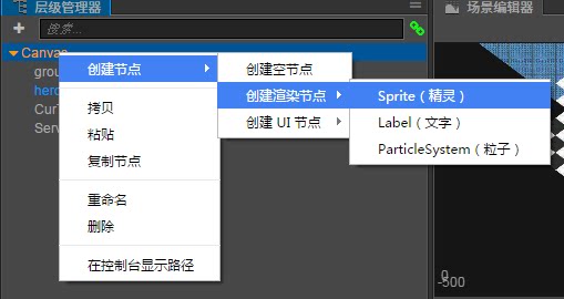 首先我们将背景添加进来 在canvas下新建精灵 Sprite 重命名为ground