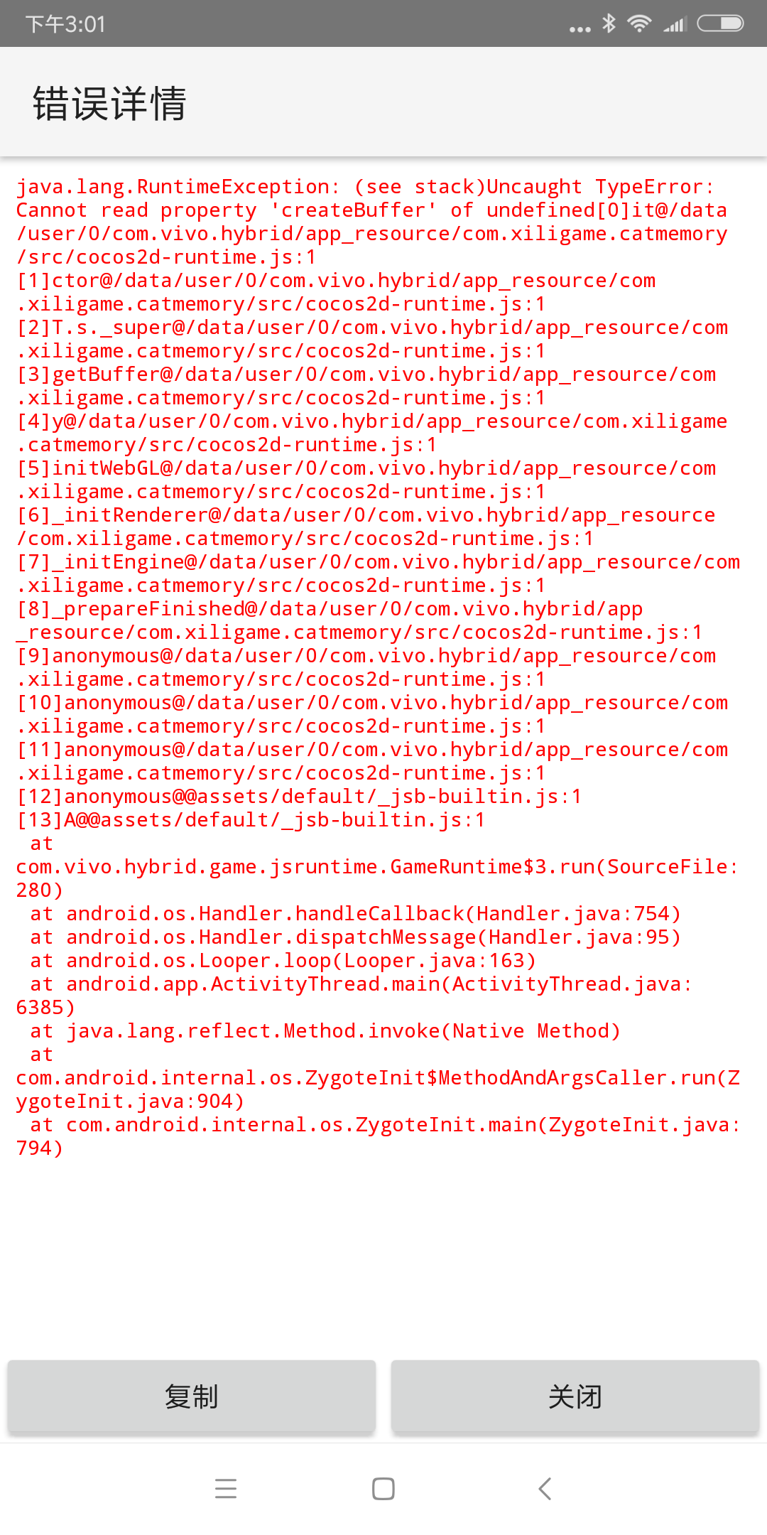 重现方式:cocoscreator 2.0.7 出vivo包没有问题, 但是在快应用调试的时候,启动游戏报错的问题