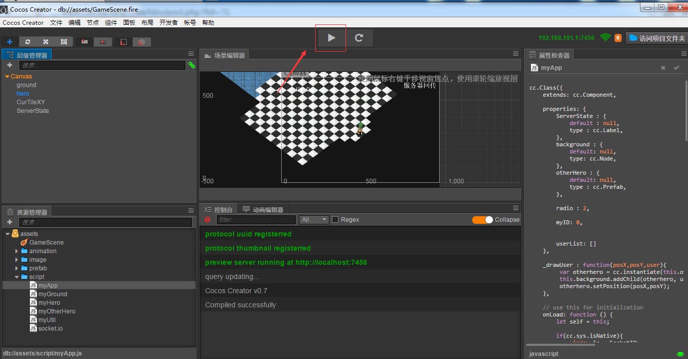 然后运行我们前一篇介绍里面的CocosCreator Coordinate 项目