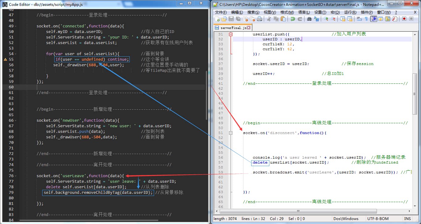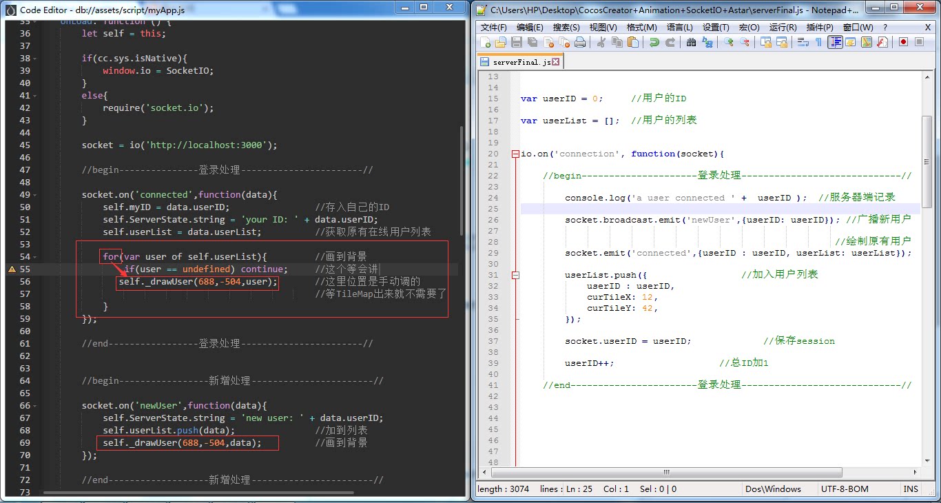 一个是自己登录 -> 需要在画布上画出所有在线的用户