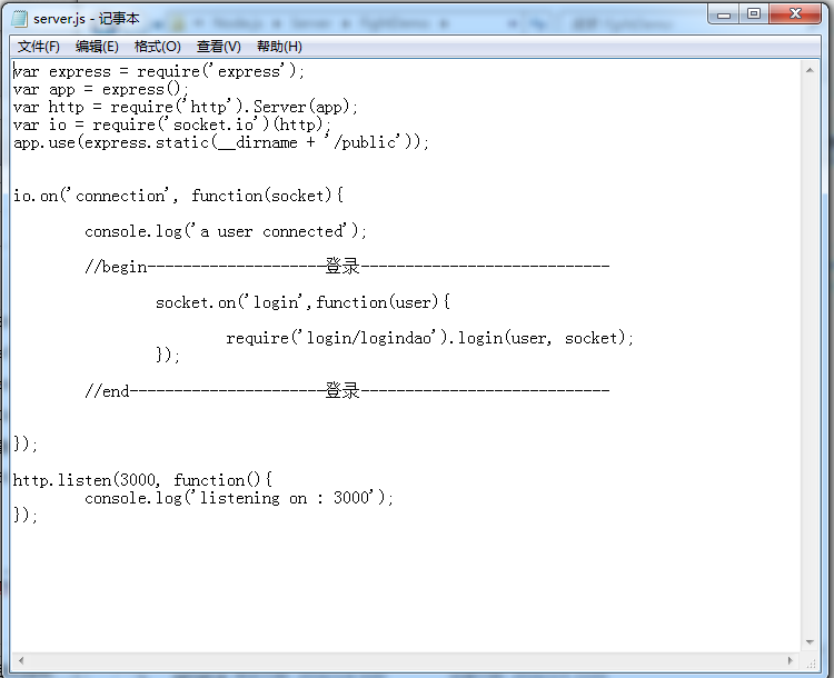 其中begin登录 end登录之外的代码属于一个简单的服务器框架 没有特殊需要我们就不需要去修改它