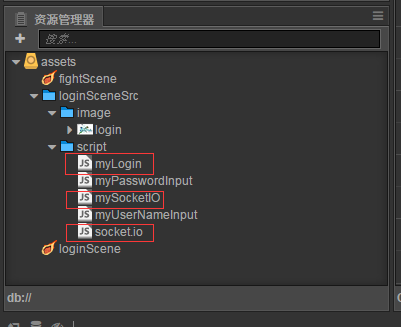 在资源管理器新建几个脚本 myLogin 负责连接服务器的逻辑 mySocketIO负责生成全局的io实例 然后socket.io就从外面扔进来吧 http://pan.baidu.com/s/1bnMts4Z,1