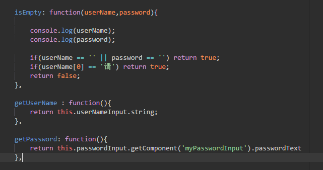 然后写上登录的逻辑吧 首先if判断用户名或密码是否为空 为空则显示提示信息 并返回 否则将用户名和密码发送到服务器