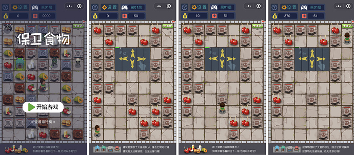 这是一款休闲晓游戏。上下左右滑动屏幕控制人物移动,不过你的每一个行为都会扣除一定的体力,吃了食物可以补充体力,且每5层会出现一个体力补给站,撞击它可以获得丰富的体力值。建筑物囤积了大量的积分,撞击它就可以获得,建筑物无法被销毁也无法穿行。如果你不想捡本层的食物,可以通过右上角的出口前往下一层。